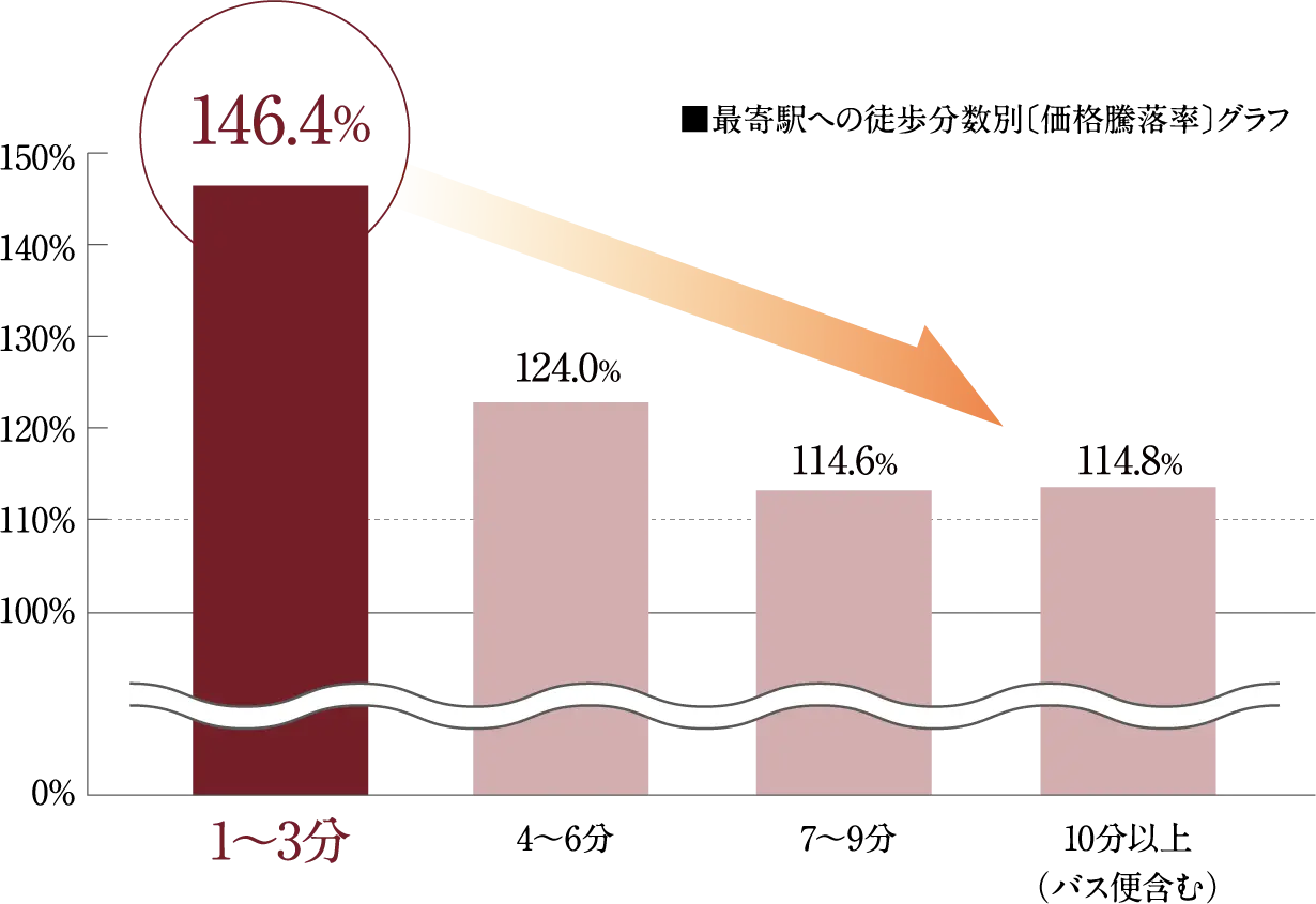下記のグラフより、最寄駅へ徒歩1〜3分の