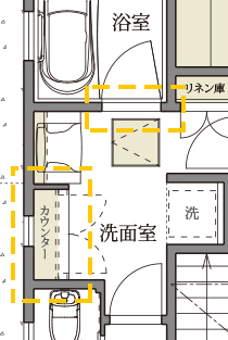 キッチン・洗面室を直線でつないだり、洗面室を2Wayにしてスムーズな動線を確保したり、1棟ずつ最適な動線を考えてプランニングしています。