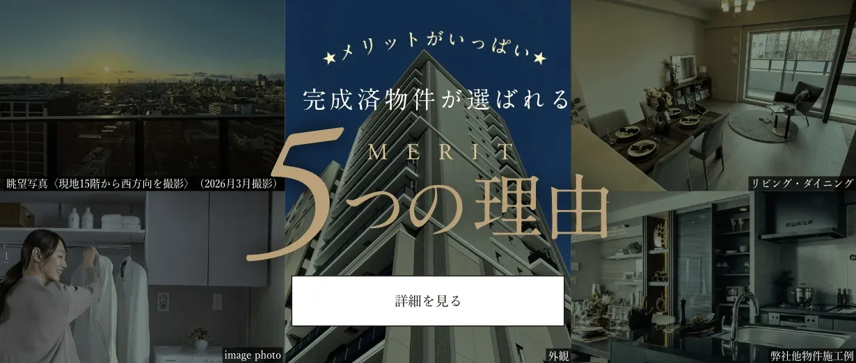 ※掲載の外観写真は2026年1月に撮影したものです。※掲載の弊社他物件施工例写真写真はデュオヒルズ千種モデルルーム(Cタイプ)を2024年4月に撮影したものです。※掲載のモデルルーム写真(A1type)は、2026年3月に撮影したものです。※掲載の写真はコーディネートイメージです。実際の用法等につきましては、管理規約の各規則や規定による制限を受けます。また一部有償オプション、メニュープランが含まれております。各種オプションプラン、メニュープランには対象住戸やお申込み時期に制限がございます。詳しくは係員にお尋ねください。家具・調度品等は販売価格に含まれておりません。設備・仕様等はタイプにより一部異なります。