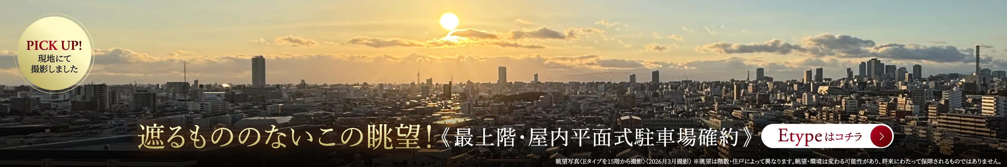 ※3:西向き住戸はA1・A2・B・Eタイプ。眺望は、各階・各住戸により異なり、今後周辺環境の変化に伴い将来にわたって保証されるものではありません。