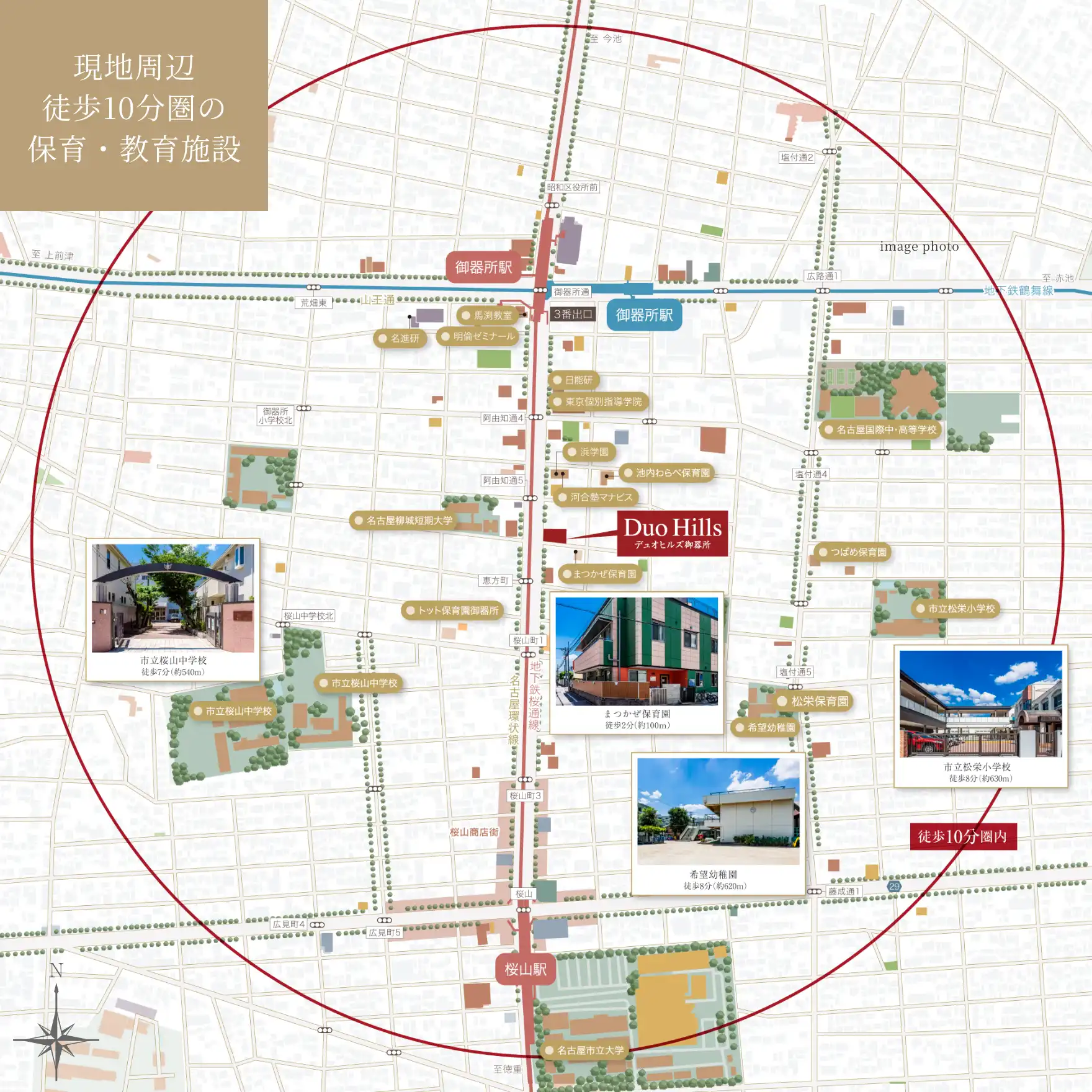 御器所エリアに受け継がれる教育の気風に培われた文教の地でお子様を育めます。