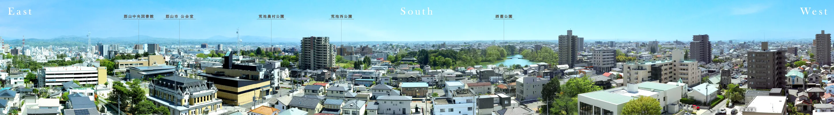 開成山公園や酒蓋公園などの都市公園が連なり