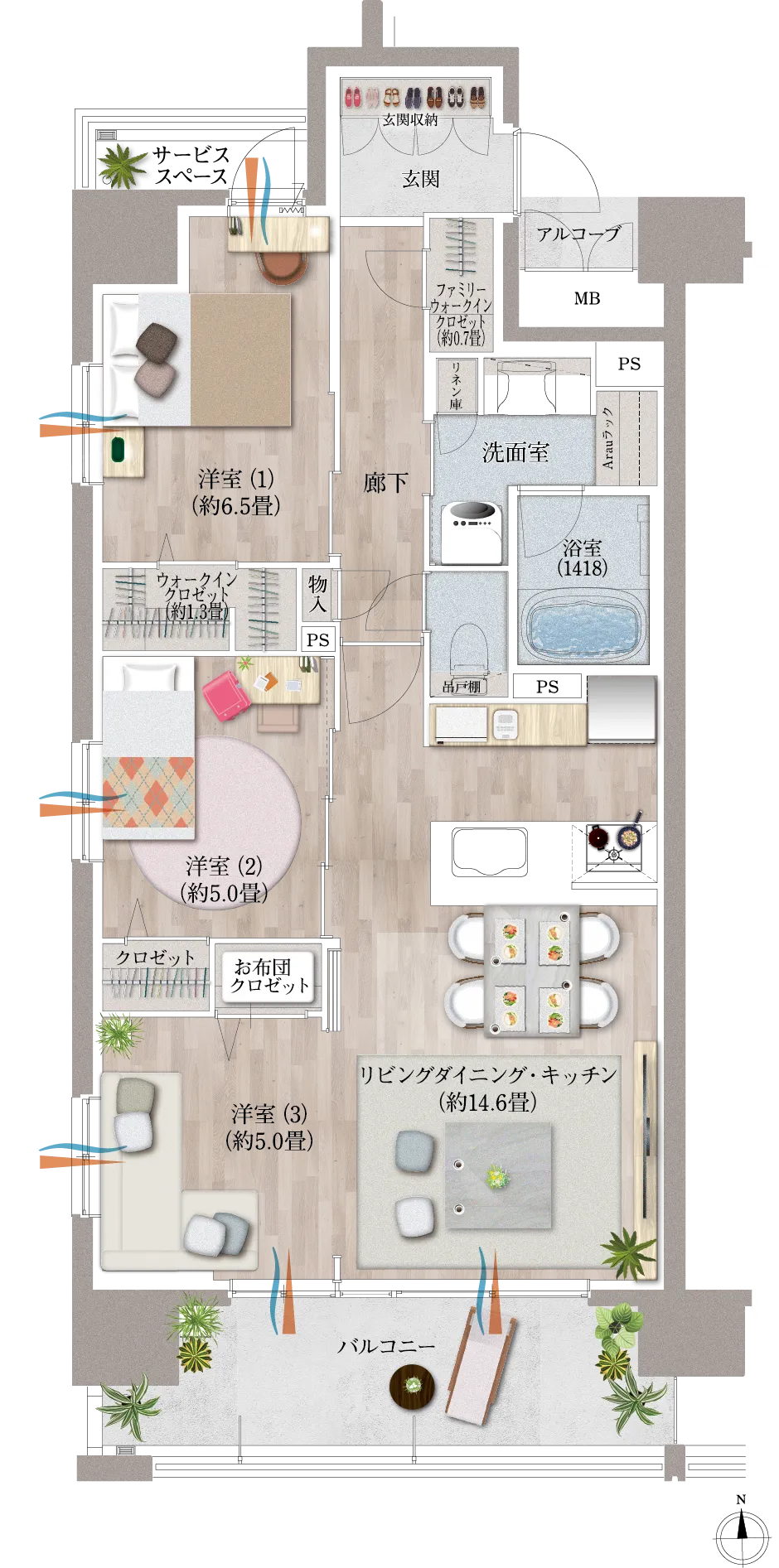 ※階数によってバルコニー形状は異なります。