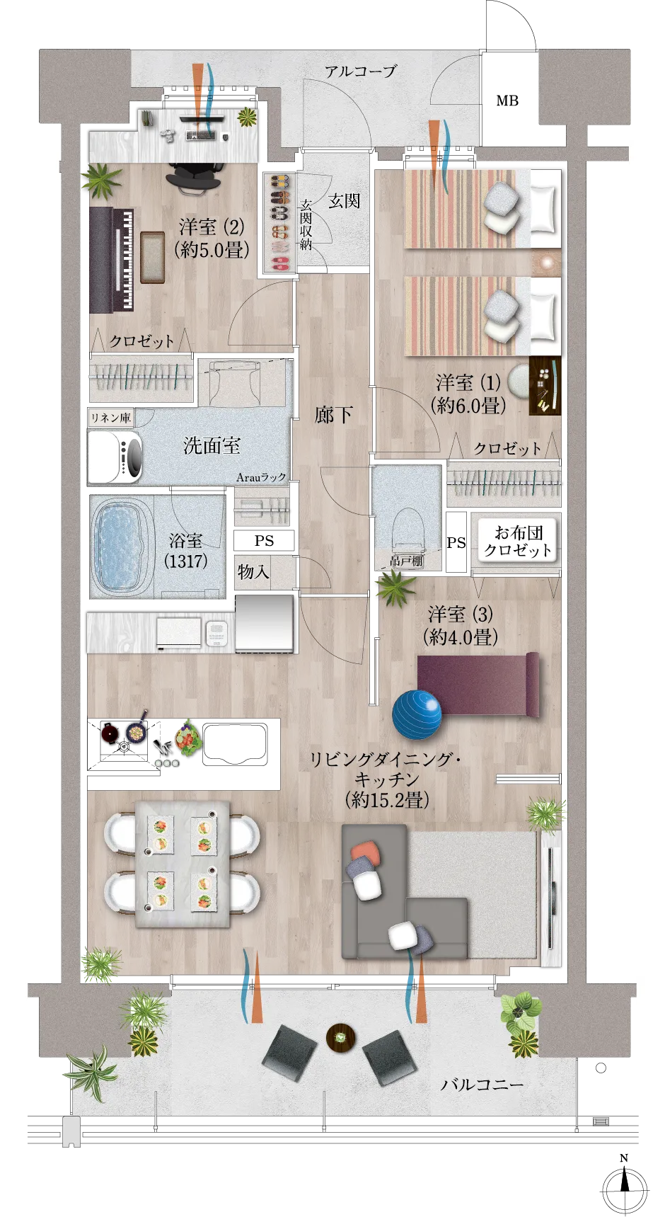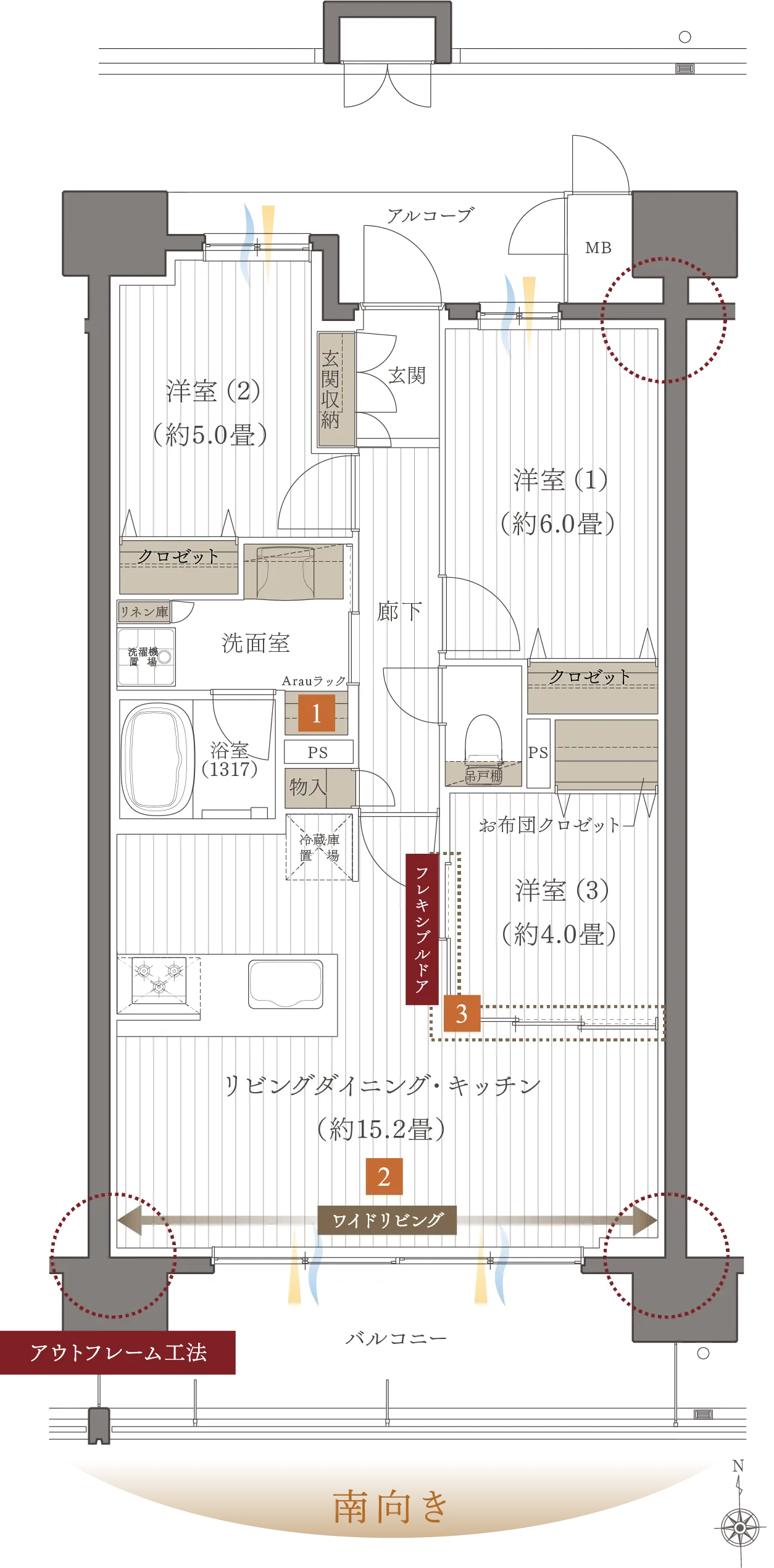 ※方位記号には若干誤差があります。正確な方位については設計図書でご確認ください。