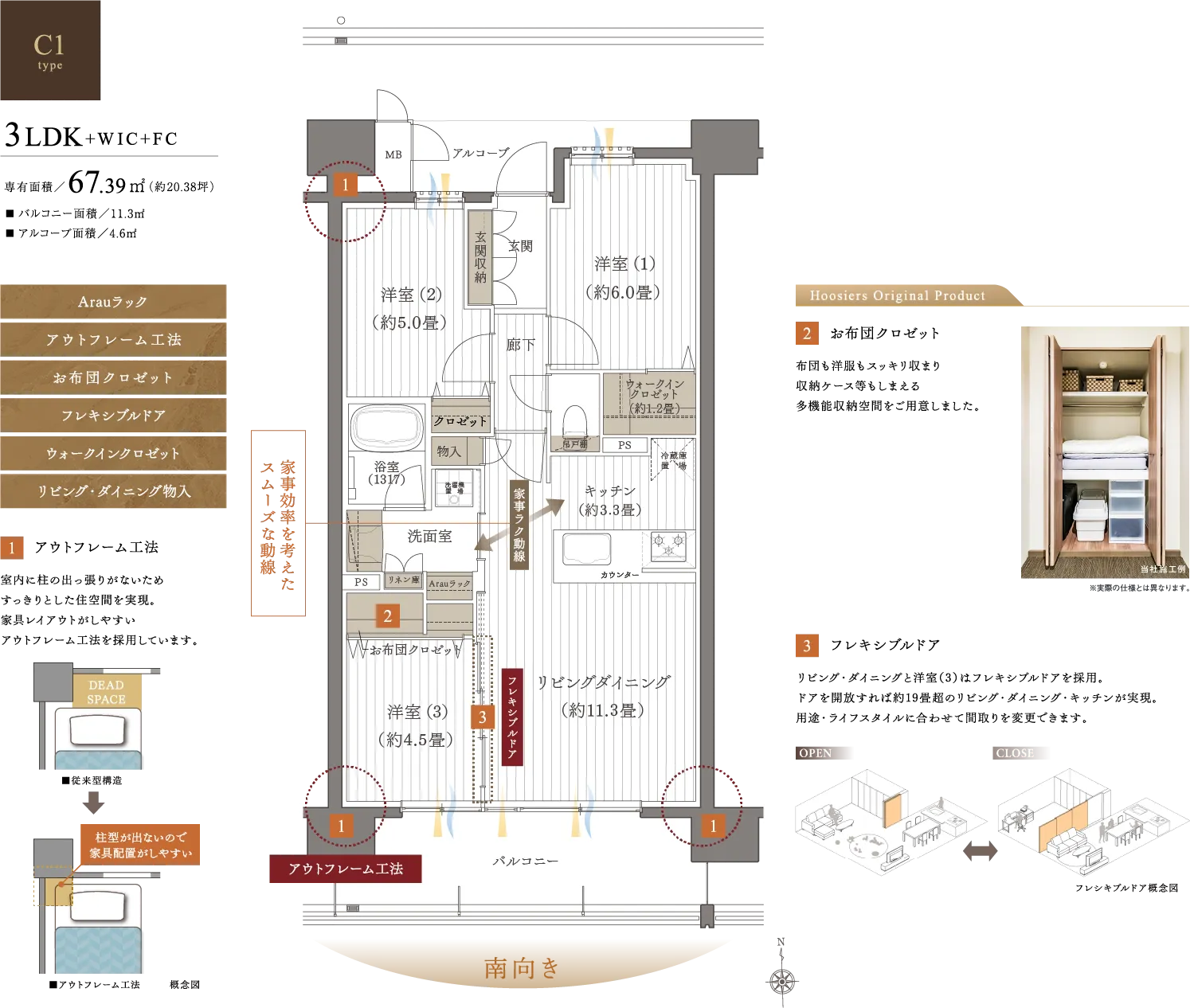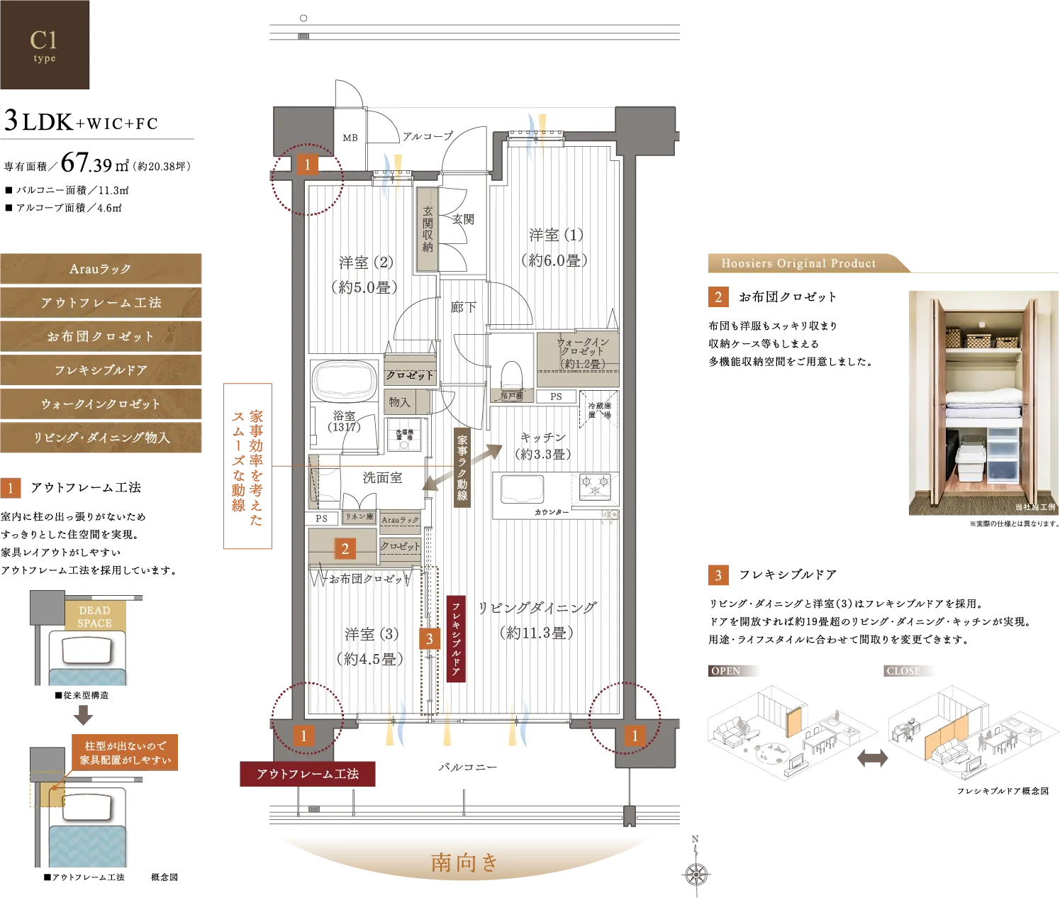 ※方位記号には若干誤差があります。正確な方位については設計図書でご確認ください。