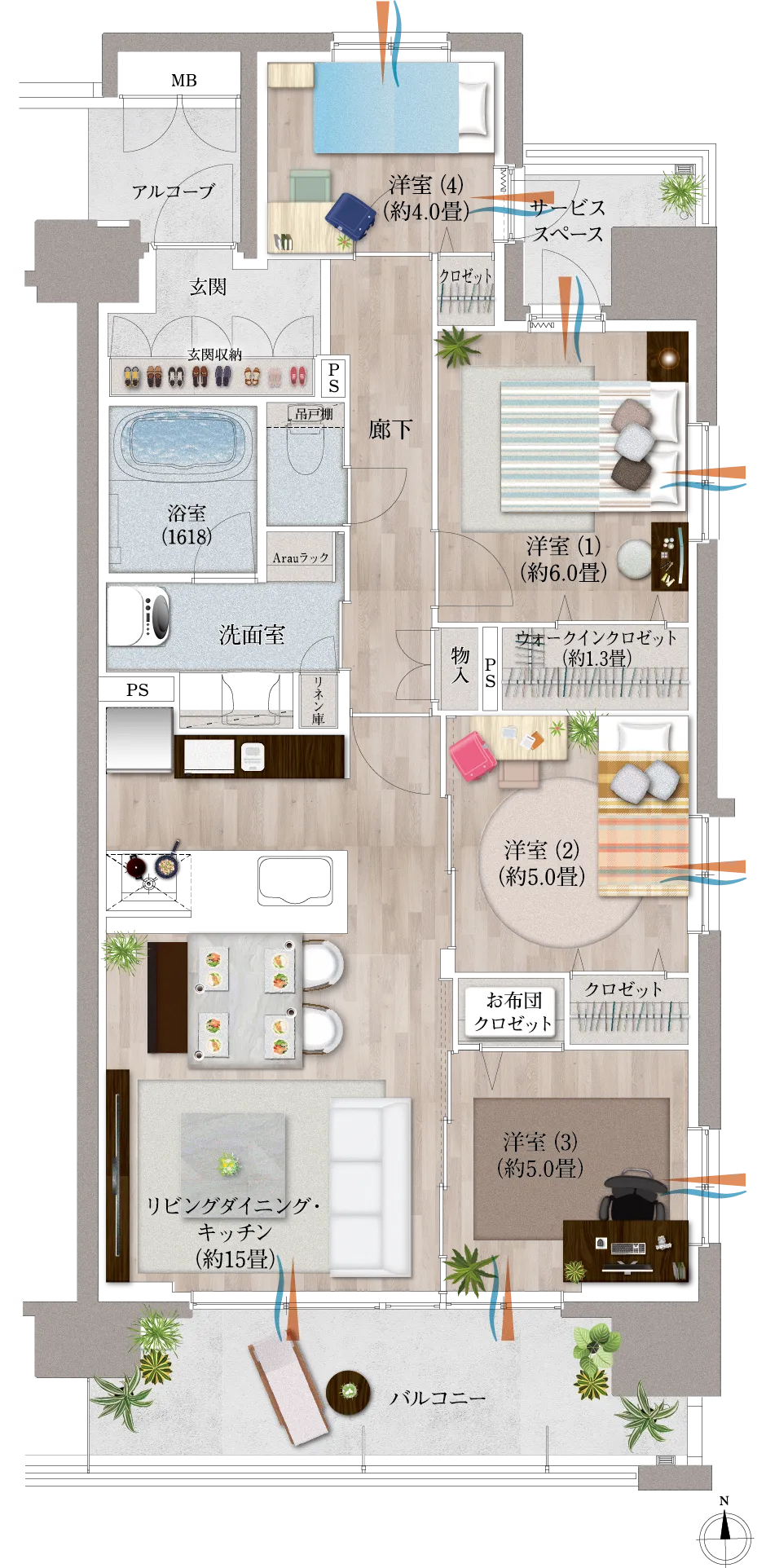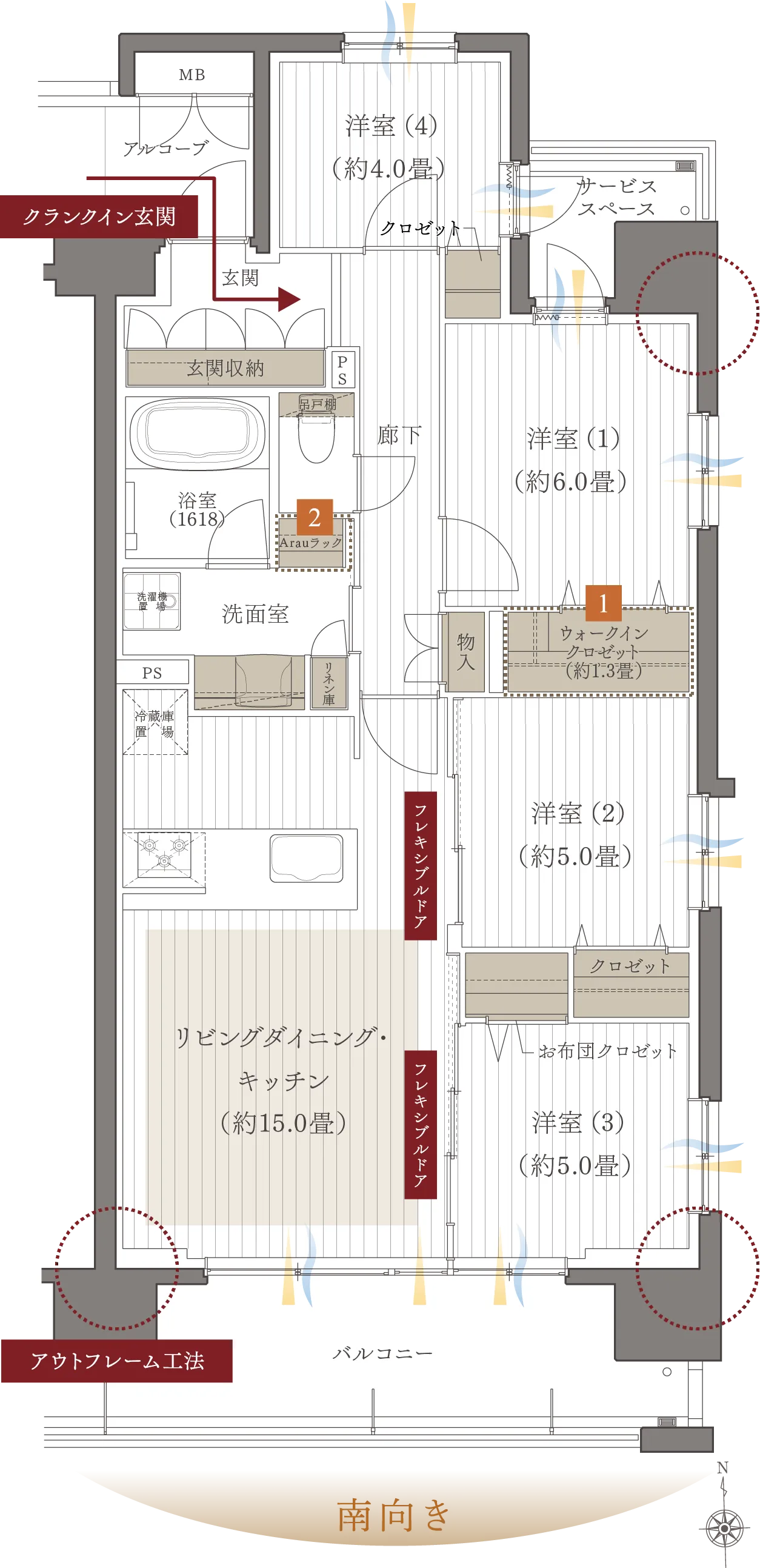 ※方位記号には若干誤差があります。正確な方位については設計図書でご確認ください。