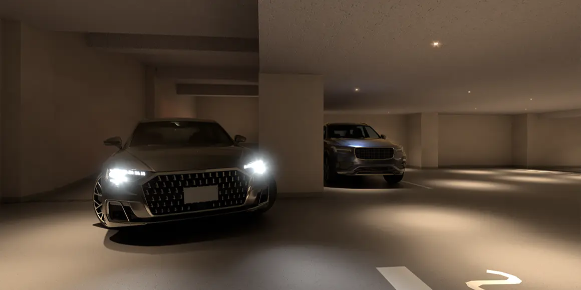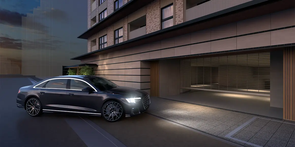 - 駐⾞場と住⼾フロアを結ぶエレベーターを採⽤。利便性とともにプライバシー性を⾼めています。