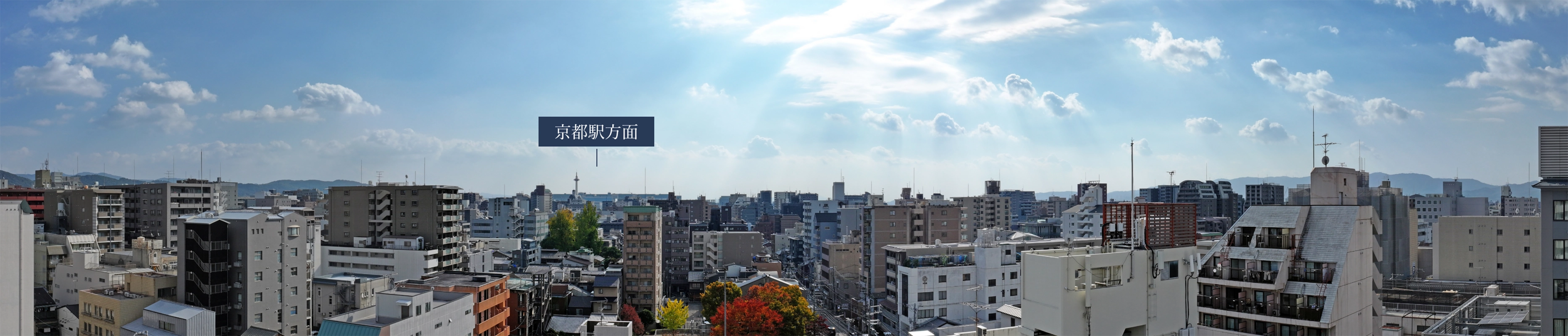 「京都」駅方面まで都心の風景を悠々と見晴らせます。