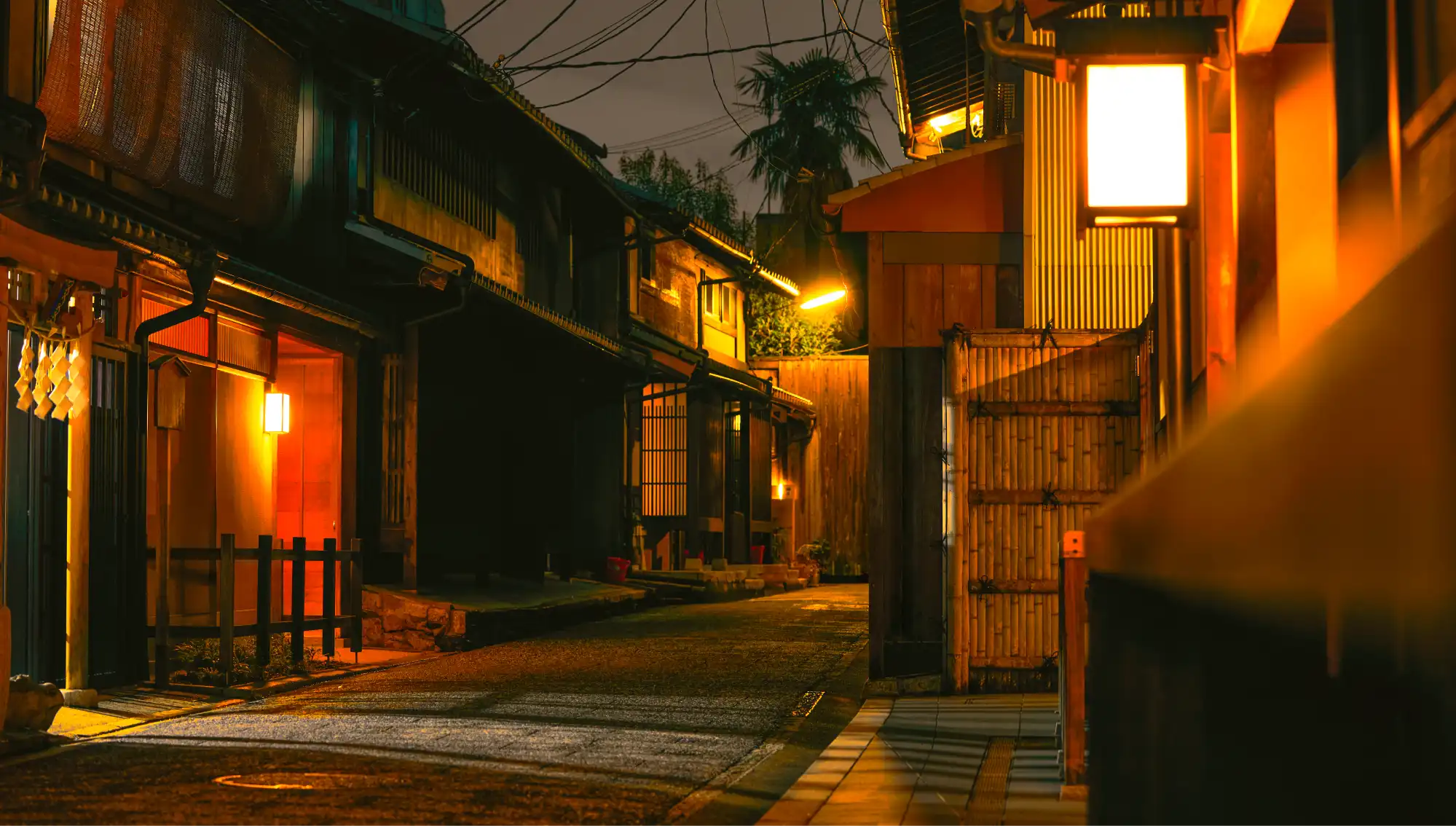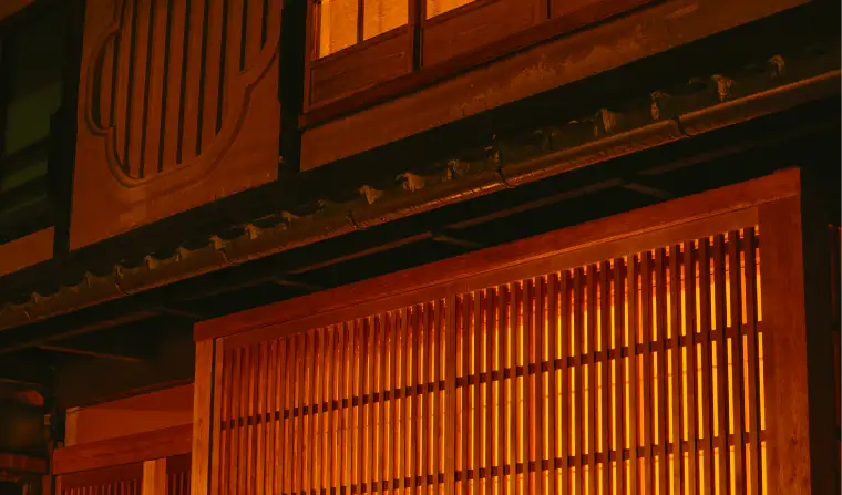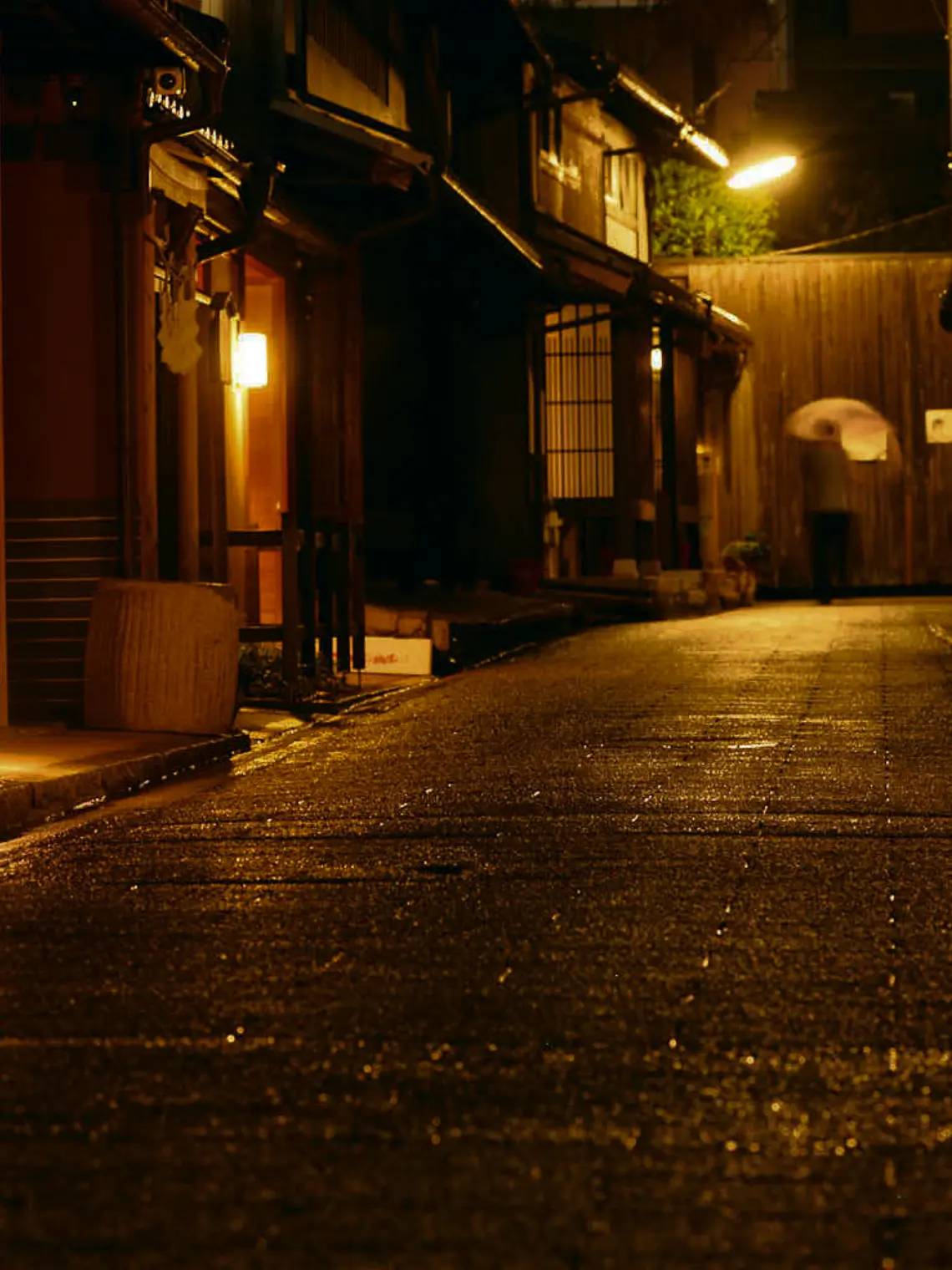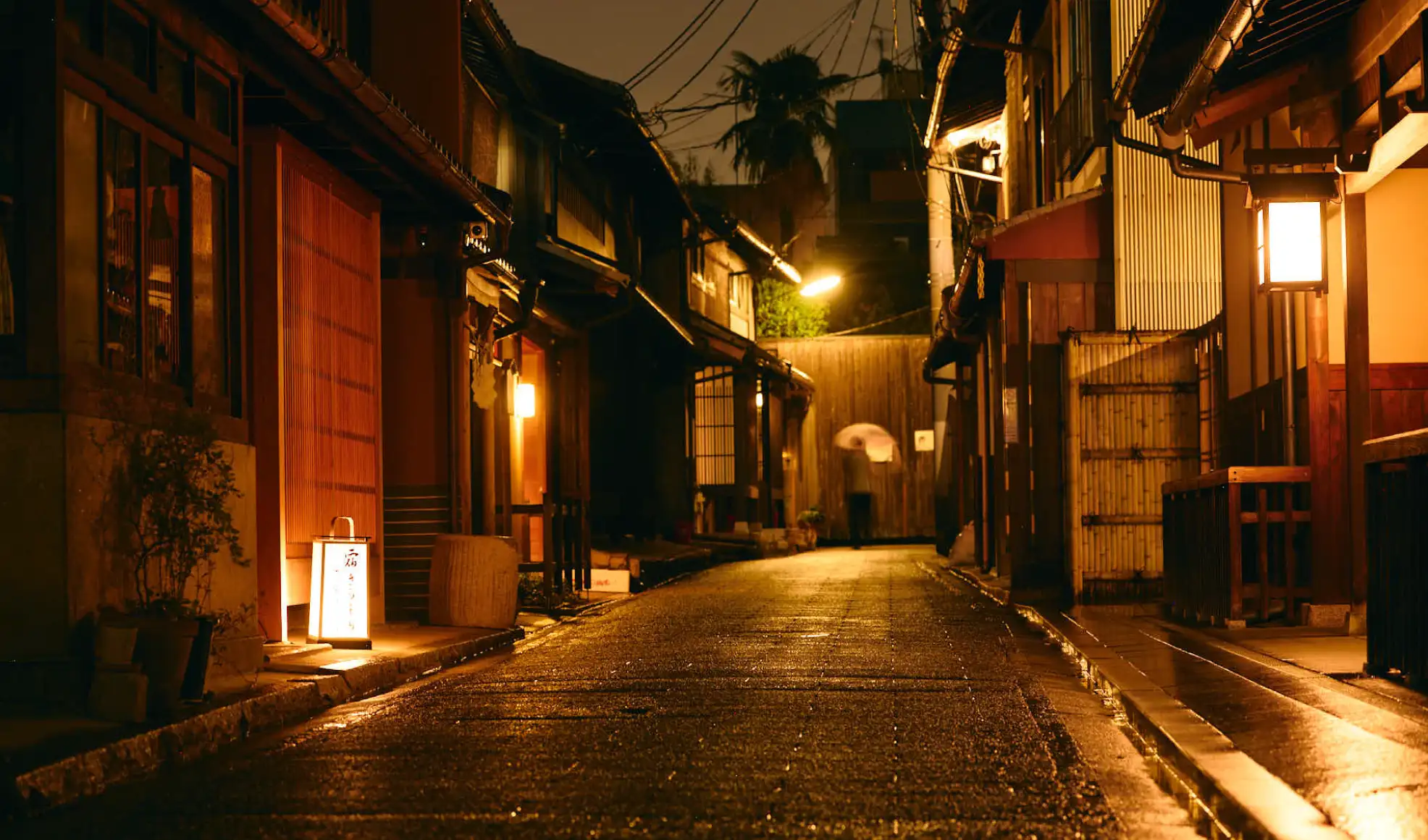 千年の歴史を誇る京都でも、都心において伝統的な町並が残るエリアはわずか。四条通から綾小路通へ抜ける路地・膏薬辻子(こうやくのずし)には、今なお京町家が連なり古都の風情が息づいています。例えば時雨に濡れた石畳に映し出される町家の灯りの美しさ。京の四季とともに静かに暮らすという贅沢を。