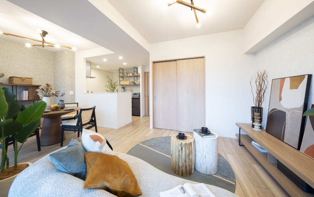 ※掲載の写真は建物内モデルルーム(C1タイプ メニュープラン及びA1タイプメニュープラン)を2025年9月に撮影したもので、一部CG 処理を施しております。掲載の写真はコーディネートイメージです。実際の用法等につきましては管理規約の各規定による制限を受けます。※有償オプションが含まれています。家具・調度品等は販売価格に含まれておりません。また、設備・仕様はタイプにより一部異なります。