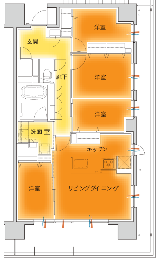 室内の温度差を軽減した